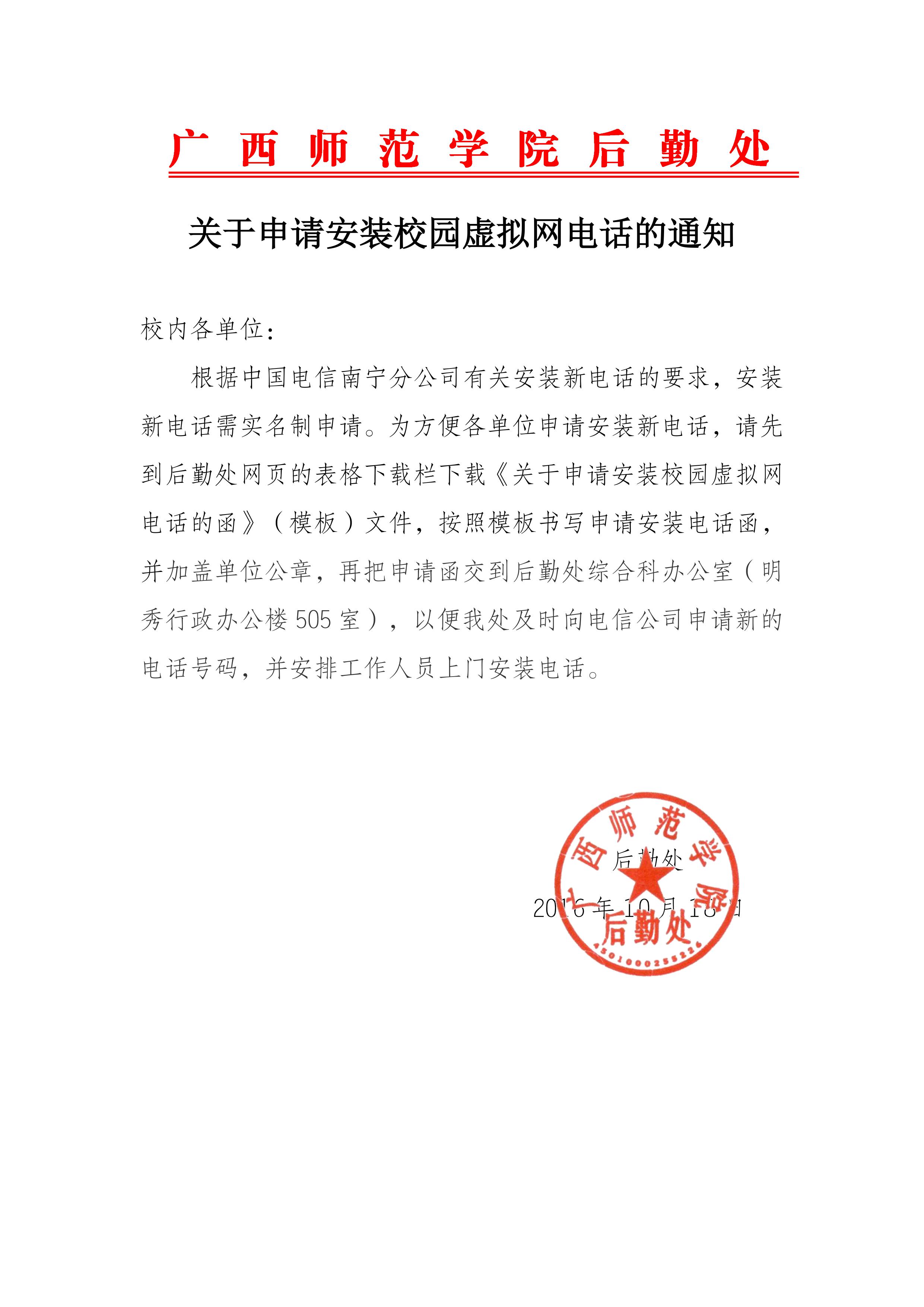关于申请安装校园虚拟网电话的通知