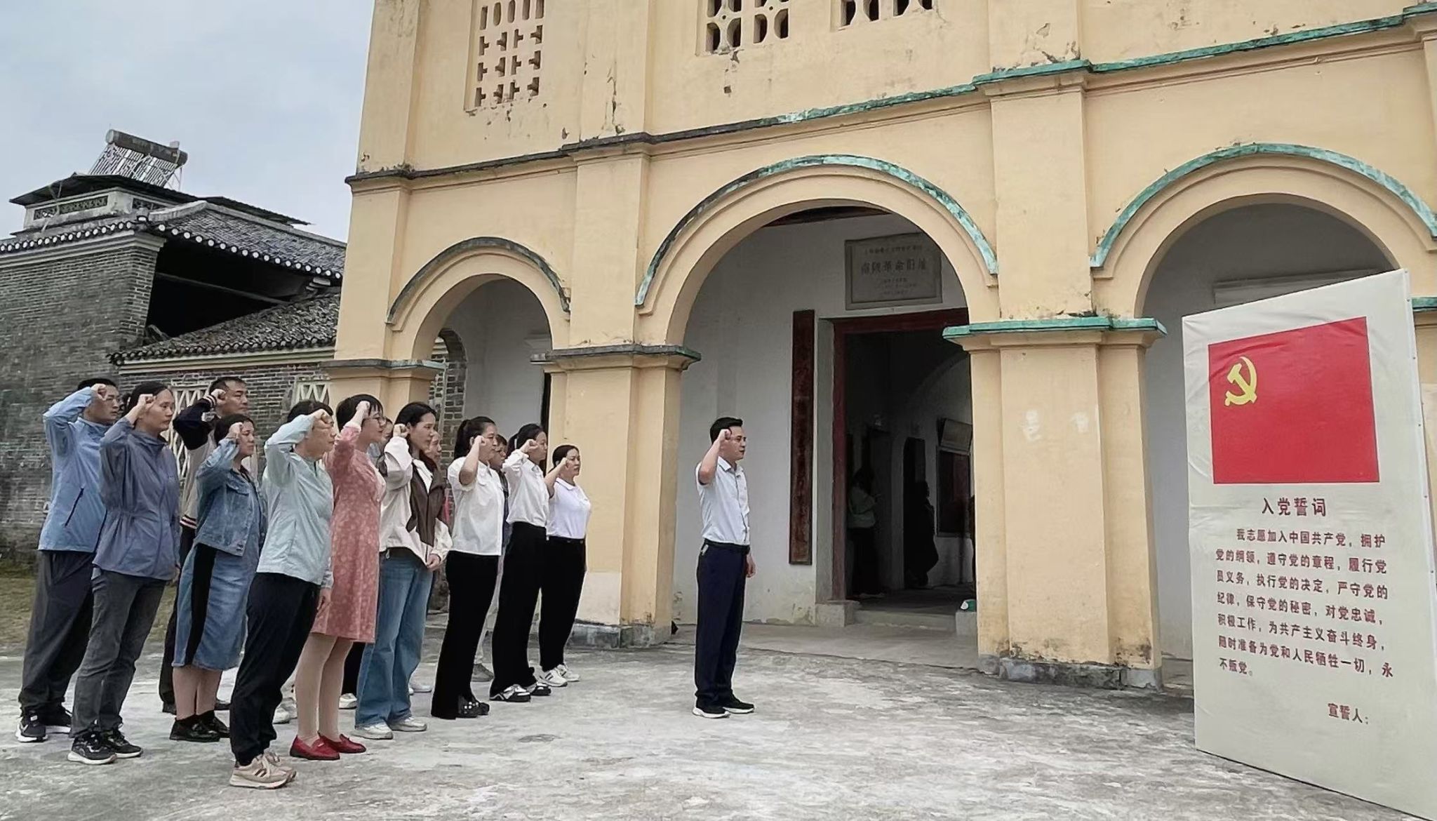 参加活动的党员同志着装得体,胸前佩戴鲜红的党徽,在党支部书记、全广铭副处长的带领下,重温了入党誓词。随后,上林县巷贤镇卢柱村党支部李副书记带领同志们参观南陔革命旧址的 “革命史馆”“宗室祠堂”“名人榜”等陈列室,讲解了老一辈无产阶级革命家艰苦卓绝的革命历程。