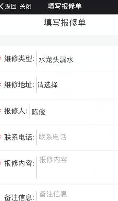 填写报修单页面。报修单界面根据维修类型界面设置显示。