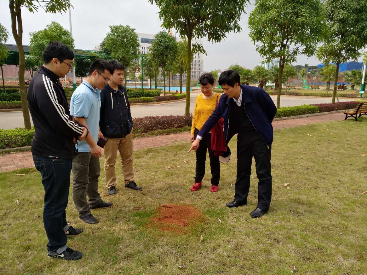 为了保证五合校区师生的安全,切实加强红火蚁防控工作,后勤处物业管理科邀请了“金地园林医生”的相关技术人员来到现场,对红火蚁防控处置的技术要求进行了详细讲解。下一步将根据专家的意见,采购针对性的药品对症下药。将红火蚁从草坪上彻底清除,保证良好的校园环境。