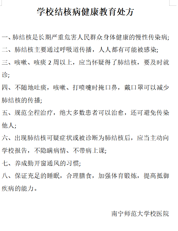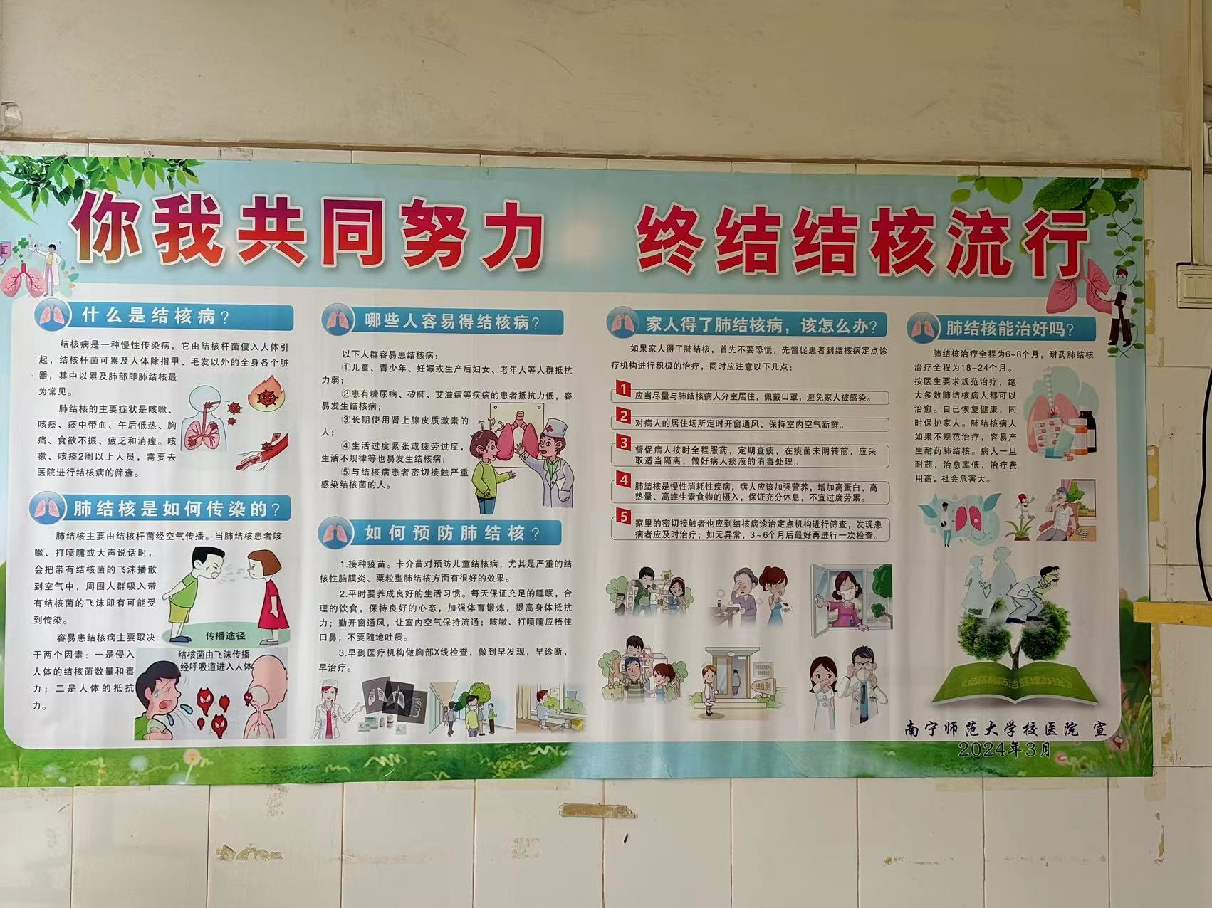 2024年3月24日是第29个“世界防治结核病日”,校医院围绕“你我共同努力 终结结核流行”的主题,开展张贴海报宣传、发放健康教育处方、上健康教育课等活动,提高广大师生的结核病防治知识知晓率,增强防病意识。