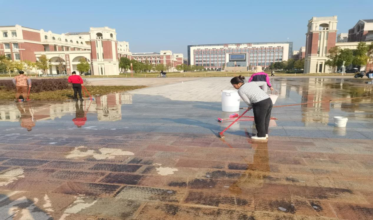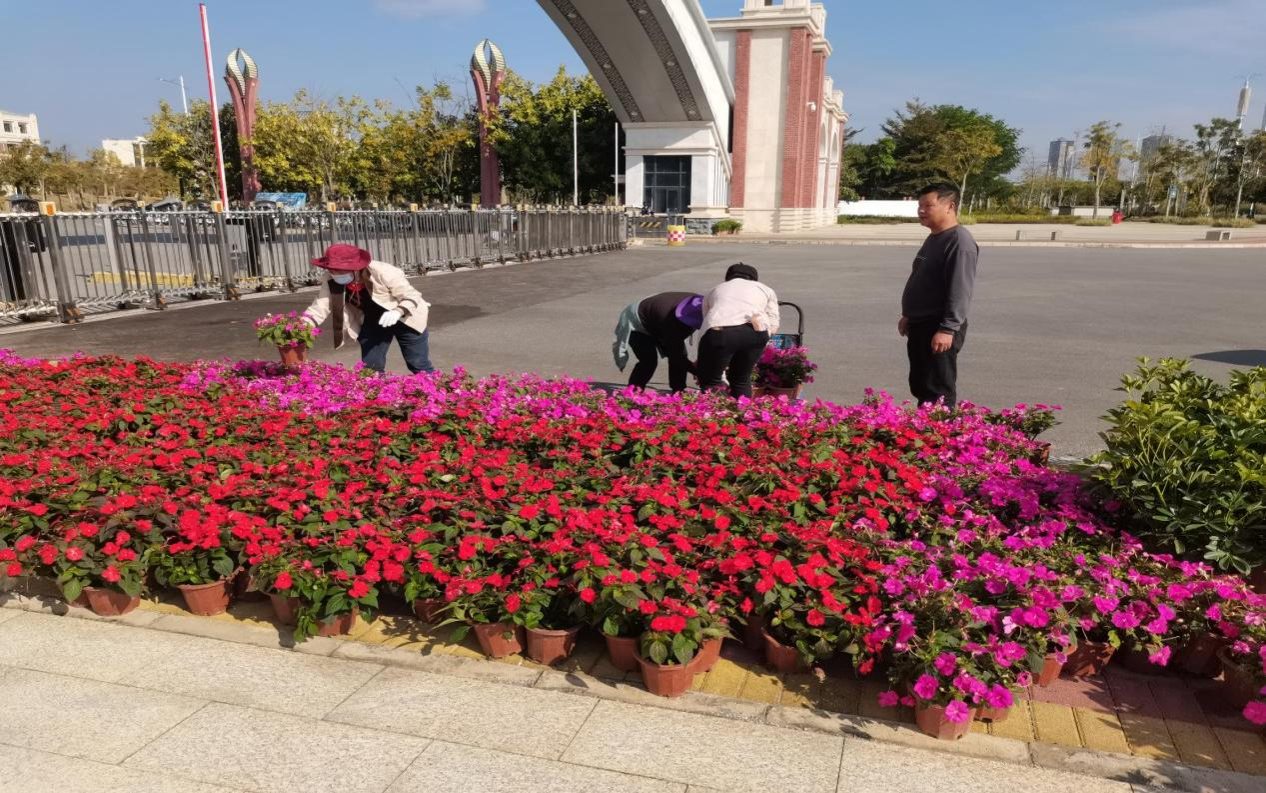 在校庆校园氛围营造中,分管领导带领员工与物业公司群策群力,扎实做好校庆期间的各项卫生清理及巡查工作。对武鸣校区松园体育馆庆典主会场、图书馆办学成果展厅、音舞楼举办晚会演播大厅等重点区域进行清扫保洁,对全校进行一次校园环境综合治理。除此之外,为保证校庆活动周边区域卫生环境的优美整洁,物业公司安排流动保洁,增加了保洁频次,并定人定位对活动周边进行实时保洁、修剪草坪,对校园内各景观区域树木花卉进行统一补种并精心灌溉养护,对校友打卡地、重要校友座谈会等主要场地周边绿地、灌木、乔木进行集中修剪打造草齐花艳树美的校园环境,为校友和宾客提供舒心的感受。