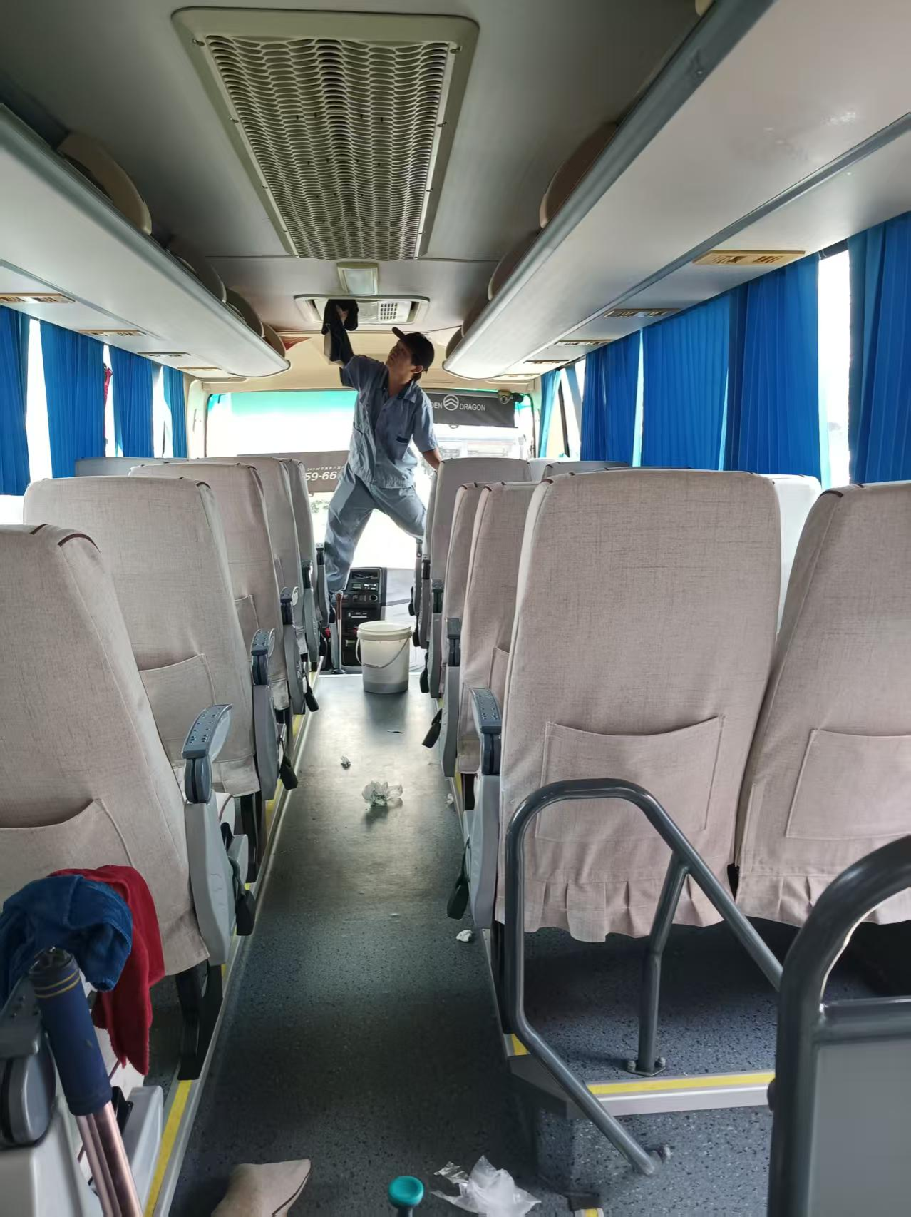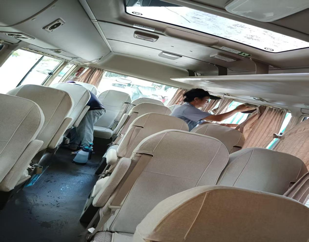 为进一步保障师生出行安全,营造洁净健康的乘车环境,betway必威西汉姆联官网车队利用暑假期间对学校全部通勤车进行维护保养,并对空调系统、窗帘及座位等进行了深度清洁与专业消毒,以焕然一新的面貌迎接新学期的到来。